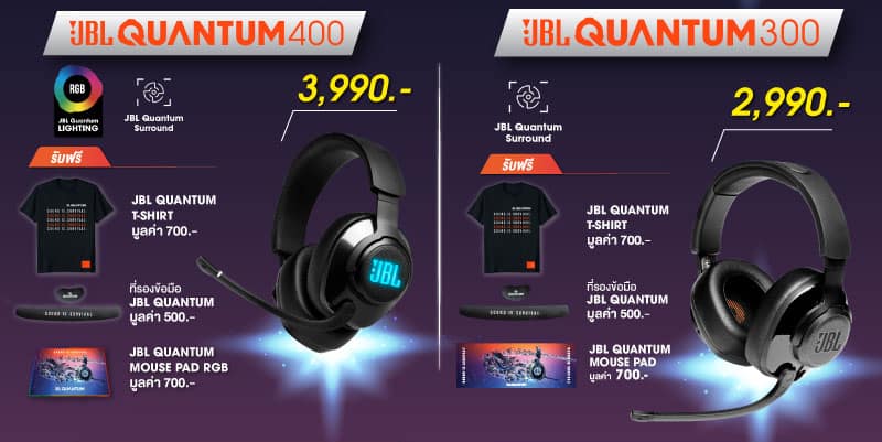 JBL QUANTUM!! หูฟัง GAMING เพื่อ GAMER ใหม่ จาก JBL พร้อมโปรโมชั่นของแถมสุดคุ้ม ทุกคำสั่งซื้อ ฟรีของแถมสุดพรีเมี่ยมสำหรับเกมเมอร์