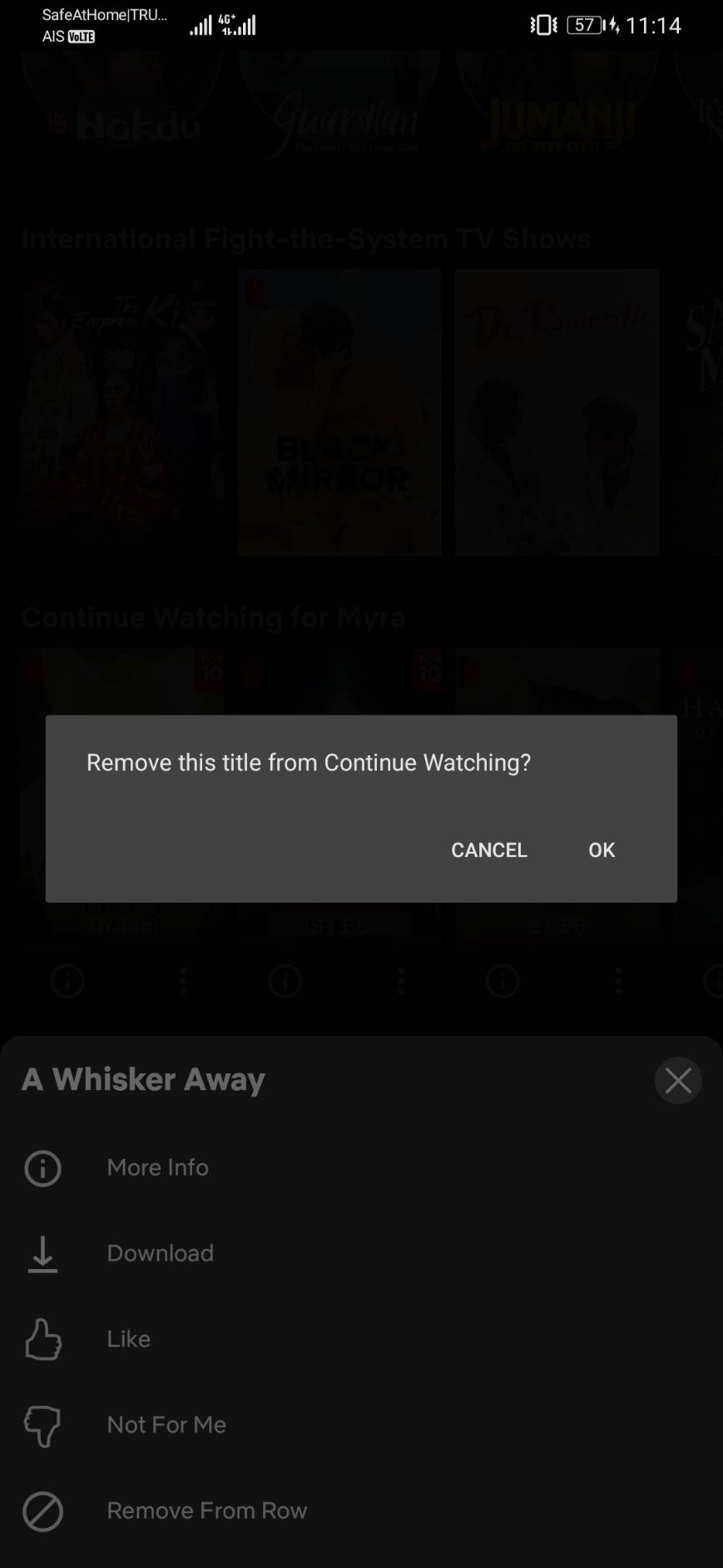 Netflix จึงเพิ่มฟีเจอร์ใหม่ขึ้นมา เพื่อช่วยให้จัดการกับเนื้อหาที่คุณไม่ต้องการง่าย ๆ ด้วยการกดที่ ⋮ จากนั้นกดที่ Remove From Row แล้วคลิก OK เท่านี้เนื้อหานั้นก็จะหายไปจากหน้าจอของคุณ