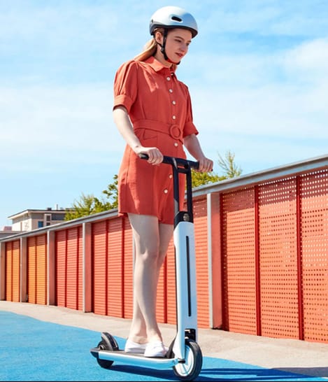 สกู๊ตเตอร์ใช้ล้อแบบยางตัน ทำให้ไม่ต้องกังวลในเรื่องลมยาง ซึ่งล้อหน้าและหลังมีขนาดแตกต่างกัน ด้านหลังใช้ล้อขนาด 6 นิ้ว ล้อด้านหน้ามีขนาด 7.5 นิ้ว ช่วยให้สะดวกในการพับเก็บและขนย้าย