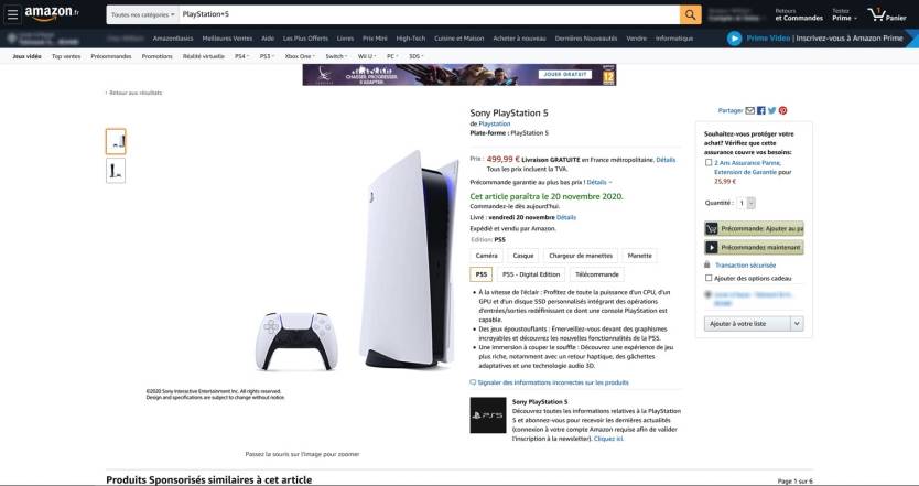 ข้อมูลหลุดล่าสุด ที่ดูจะมีความเป็นไปได้ เกี่ยวกับ ราคา และ วันวางจำหน่าย ของ PlayStation 5 โดยหลุดมาทางหน้าเว็บของ Amazon ฝรั่งเศส ระบุถึงราคา อยู่ที่ 499.99 ยูโร หรือประมาณ 17,500 บาท และวันวางจำหน่าย กำหนดไว้เป็นวันที่ 20 พฤศจิกายน 2563 นี้