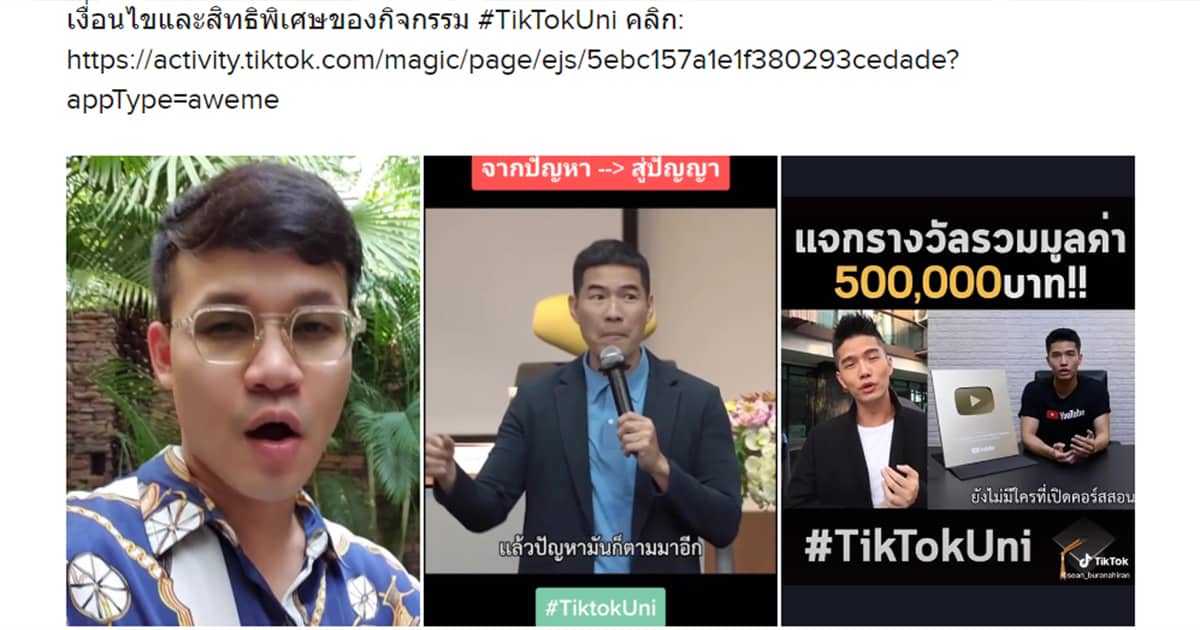 แต่ยังเป็นแพลตฟอร์มที่ทรงพลังประสิทธิภาพในการสื่อสารข้อมูลที่เป็นประโยชน์และน่าเชื่อถือ ซึ่งในประเทศไทยนั้นได้มีการต่อยอดความสำเร็จนี้มาสู่การเปิดตัวแคมเปญ #TikTokUni เพื่อส่งเสริมให้เกิดการสร้างสรรค์คอนเทนต์ที่เป็นสาระและความรู้บนแพลตฟอร์มมากยิ่งขึ้น โดย TikTok ได้รับความสนใจจากผู้เชี่ยวชาญและนักการศึกษาที่เข้ามาให้ความรู้ผ่านการสร้างสรรค์คอนเทนต์วิดีโอสั้นที่มีสาระให้สนุก เข้าใจง่าย