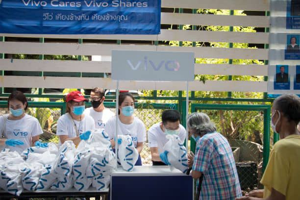 เมื่อเร็วๆนี้ Vivo ประเทศไทยจัดกิจกรรม “Vivo Cares Vivo Shares วีโว่ เคียงข้างกัน เคียงข้างคุณ” นำทัพพนักงานแจกถุงยังชีพ ของอุปโภคบริโภคที่จำเป็น เครื่องดื่ม ข้าวสาร อาหารแห้ง เพื่อช่วยเหลือผู้ได้รับผลกระทบจากวิกฤติการแพร่ระบาดโควิด-19 ทั้งนี้ได้มอบให้คนไทยทุกภูมิภาค กว่า11 จังหวัด ได้แก่ อยุธยา นครปฐม นครราชสีมา ขอนแก่น อุบลราชธานี ชลบุรี ภูเก็ต สงขลา เชียงใหม่ เชียงราย และกรุงเทพฯ