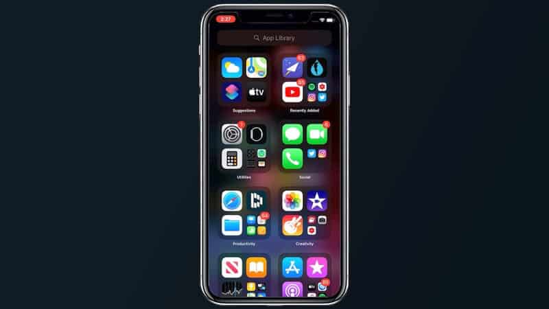 นอกจาก Widget แล้วก็มี App Library ที่เป็นอินเตอร์เฟสในการแสดงและจัดระเบียบแอปเข้าโฟลเดอร์เป็นหมวดหมู่ ซึ่งมีทั้งการจัดแบบอัตโนมัติ และเรียงตามตัวอักษร ช่วยให้ผู้ใช้งานหาแอปได้ง่ายขึ้น ในกรณีที่มีหน้า Home Screen ที่รกมากๆ ซึ่งผู้ใช้งานไม่ได้ทำการจัดหมวดหมู่ของแอปเอาไว้ และมีจำนวนแอปหลายๆหน้า