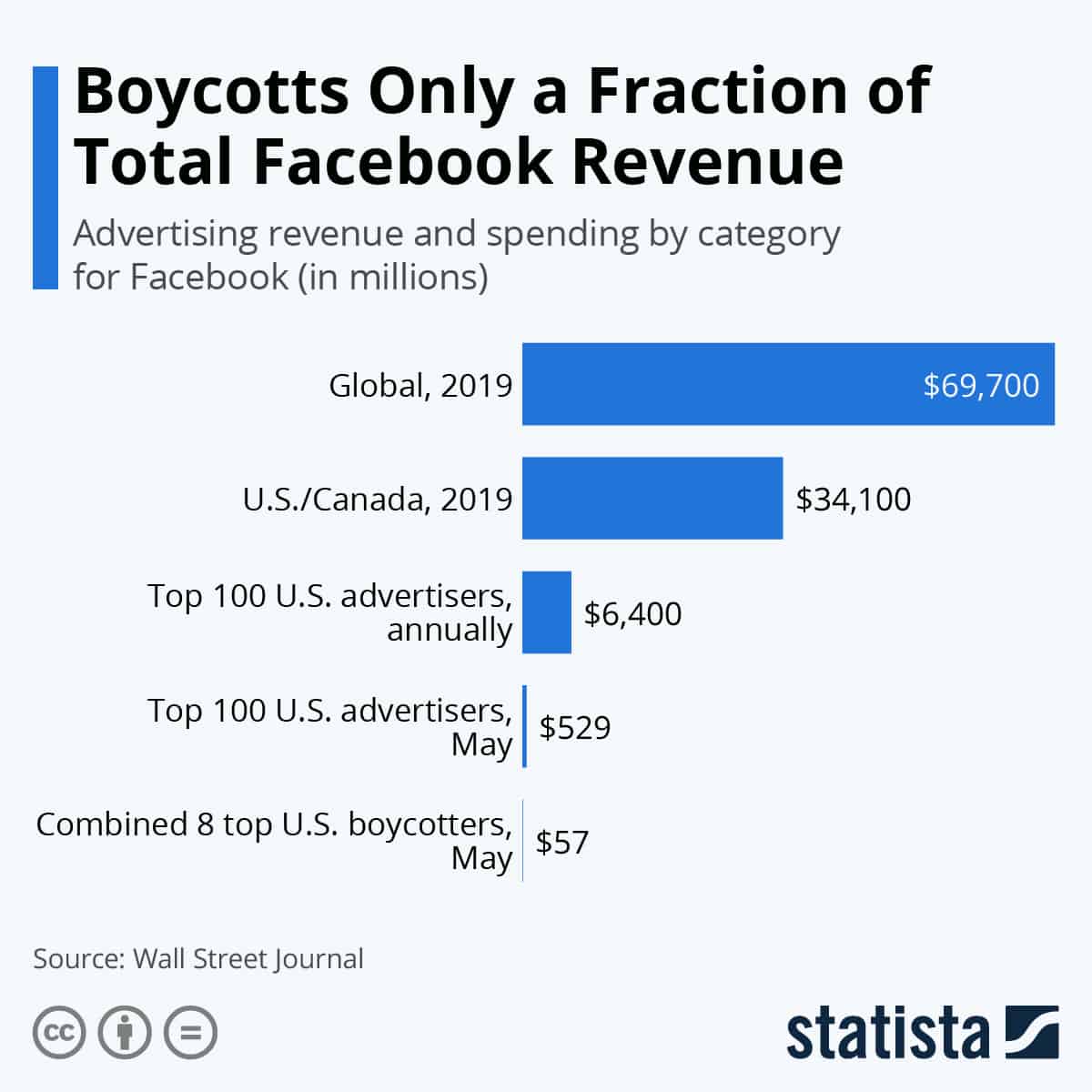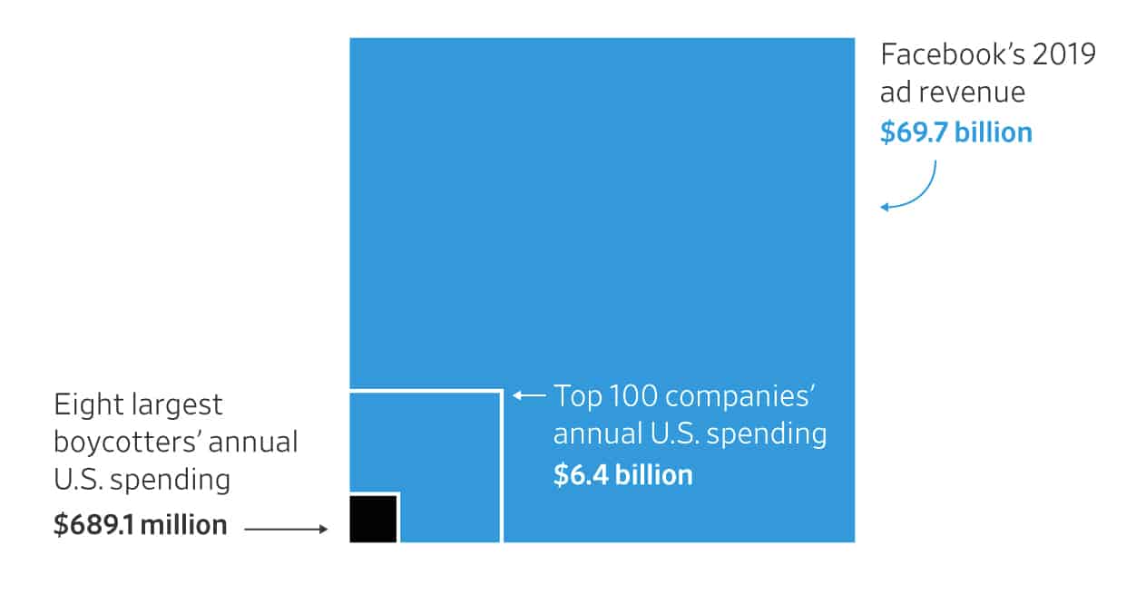 จากรายงานของ The Wall Street Journal นั้นพบว่า บริษัทที่ใหญ่ที่สุด Top 8 ที่คว่ำบาตร Facebook นั้นสร้างรายได้จากการโฆษณาบน Facebook ของเดือนพฤษภาคมที่ผ่านมาไปได้เพียง 57 ล้านดอลล่าร์ โดยบริษัทที่ร่วมคว่ำบาตรที่ใหญ่ที่สุดคือ Microsoft จ่ายค่าโฆษณาไปประมาณ 10.4 ล้านดอลล่าร์ และตามมาด้วย Starbucks ที่จ่ายค่าโฆษณาไป 8.1 ล้านดอลล่าร์ รายได้ค่าโฆษณาที่ได้จากบริษัท Top 8 ที่คว่ำบาตรนั้นคิดเป็น 10% ของผู้ลงโฆษณา Top 100 ในสหรัฐทั้งเดือนพฤษภาคม 2020 ที่ 529 ล้านดอลล่าร์