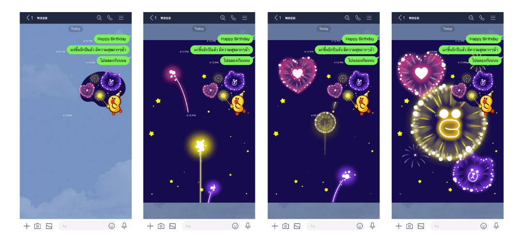 - ผู้ใช้ LINE สำหรับ iOS หรือ Android เวอร์ชันต่ำกว่า 10.11.0 รวมถึงผู้ใช้ LINE PC เมื่อได้รับสติกเกอร์เอฟเฟกต์ สติกเกอร์จะแสดงผลเป็นสติกเกอร์ป๊อปอัพ