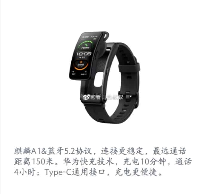 TalkBand B6 ใช้ชิป Kirin A1 แบบเดียวกับที่ใช้บนหูฟัง TWS และ Smartwatch เพื่อเชื่อมต่อบลูทูธและการจัดการพลังงานที่ดีขึ้น