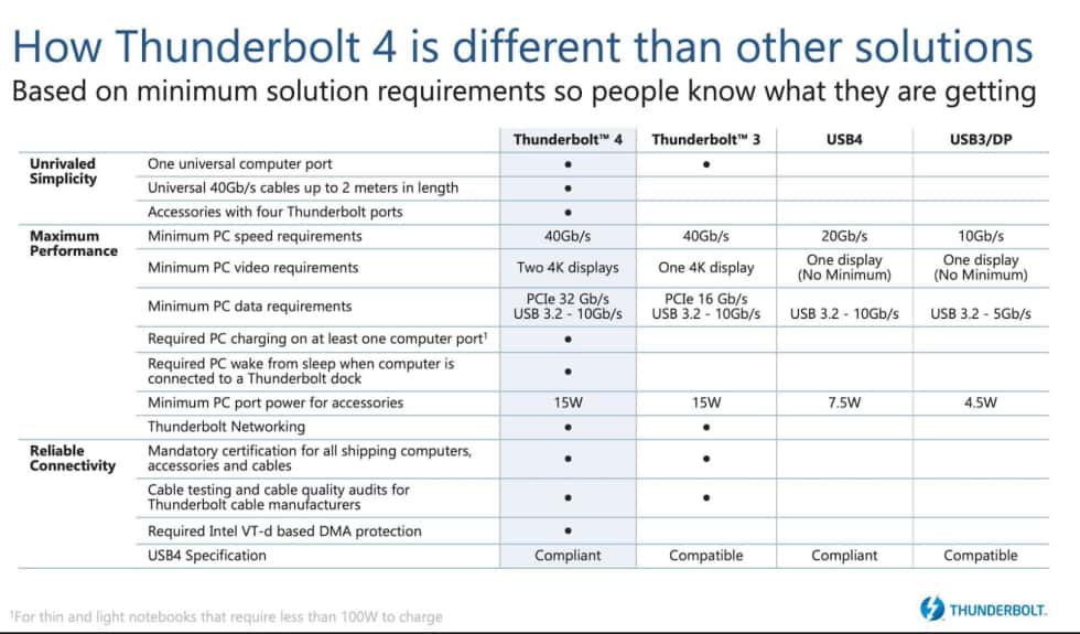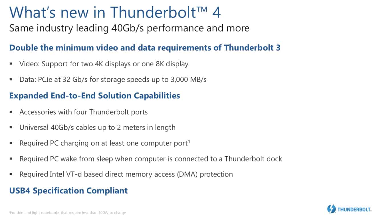 สรุปสเปคของ เทคโนโลยี Thunderbolt 4 ที่น่าสนใจดังนี้