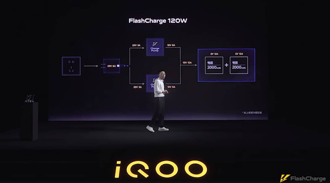 ก่อนหน้านี้ Vivo ได้เปิดตัวเทคโนโลยี FlashCharge 120W ที่งาน Mobile World Congress Shanghai ในปี 2019 แต่มันก็ไม่ถูกนำมาผลิตออกขาย ดังนั้น เทคโนโลยีชาร์จไวของ iQOO ถือว่าเป็นเทคโนโลยีชาร์จไว 120W ตัวแรกของโลก