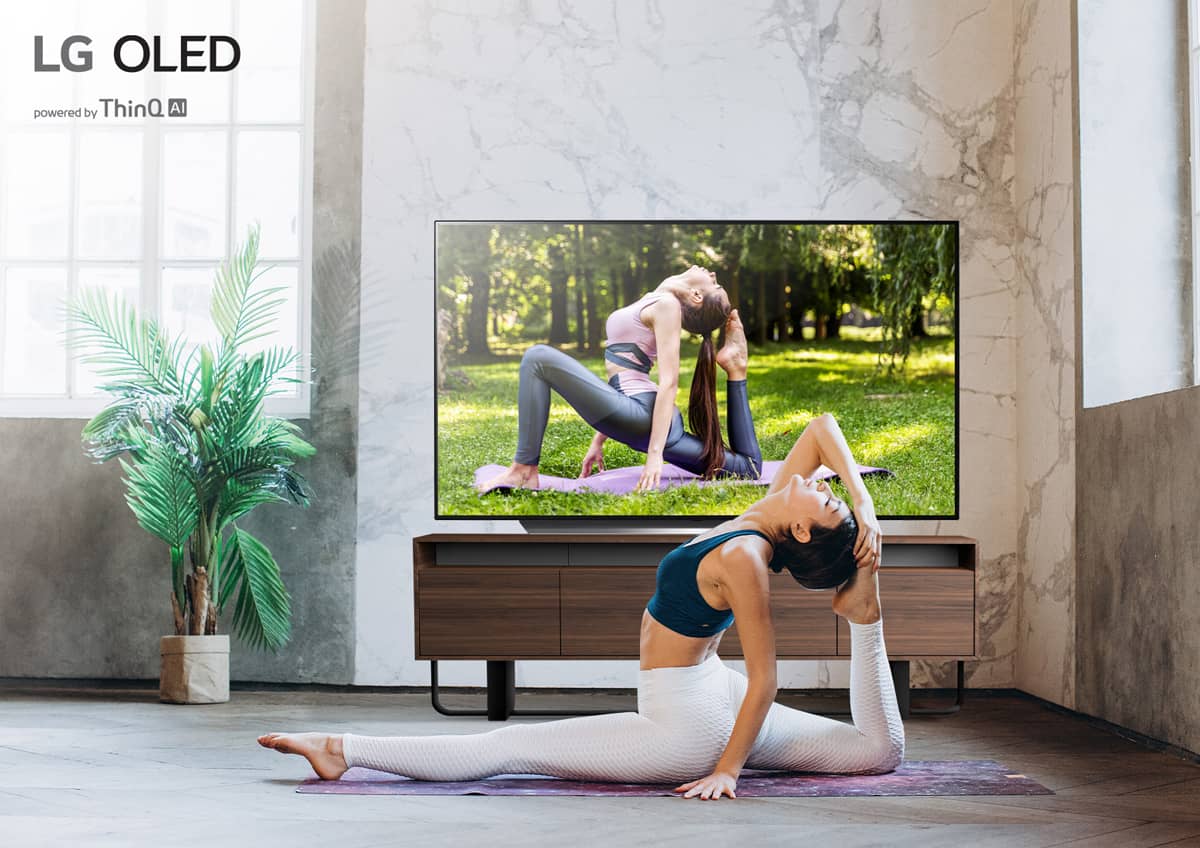 วิถีชีวิตใหม่ที่ช่วยให้เรายังออกกำลังกายที่บ้านได้เหมือนอยู่ฟิตเนส คือ คลาสออกกำลังกายออนไลน์ต่างๆ ที่มีโปรแกรมเทรนเนอร์ส่วนตัวให้ฟิตแอนด์เฟิร์มได้โดยไม่ต้องออกไปไหน การมีทีวี ยิ่งช่วยให้ประสบการณ์การออกกำลังกายที่บ้านสนุกสนาน นอกจากจะสตรีมเนื้อหาจากสมาร์ทโฟนหรือแท็บเล็ตได้อย่างง่ายดาย ทั้ง iOS และ Androids ขึ้นไปเล่นบนจอใหญ่แล้ว ก็ยังสามารถสั่งงานทีวีด้วยเสียงผ่านระบบ ThinQ AI ได้ทั้งภาษาไทยและภาษาอังกฤษ จึงค้นหาโปรแกรมออกกำลังอย่างรวดเร็วทันใจไม่ว่าจะเป็นจากยูทูบ หรือกูเกิ้ล สร้างบรรยากาศในการออกกำลังกายด้วยความสมจริงของภาพและเสียงจากชิปประมวลผลอัจฉริยะ α9 ที่มีเทคโนโลยี AI อัพเกรดภาพให้คมชัดและเสียงรอบทิศทาง
