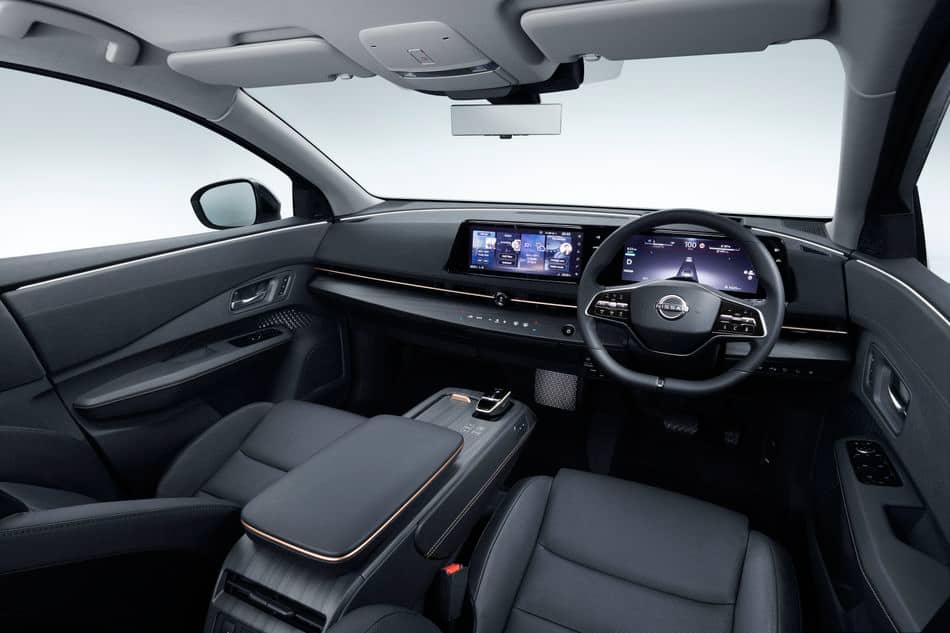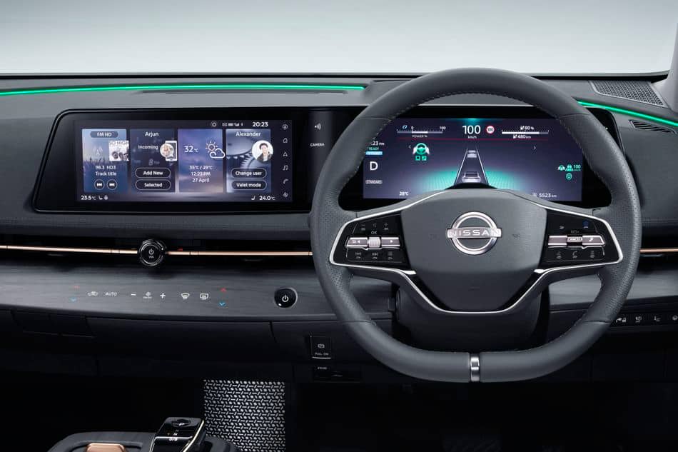 มาดูกันที่ภายในตัวรถบ้าง มันมาพร้อมกับหน้าจอแบบทัชสกรีน 2 จอโดยที่ 1 จอเป็นหน้าจอแบบสีติดตั้งตรงกลางคอนโซลรถ อีกหน้าจอจะอยู่หลังพวงมาลัย ยังมีการรวมเอาผู้ช่วยดิจิทัลอย่าง Alexa อีกทั้งยังสามารถอัพเดตเฟิร์มแวร์ได้แบบ OTA ทั้ง Apple CarPlay และ Android Auto นอกจากนี้ยังมี smart voice assistant เวอร์ชั่นใหม่ของทาง Nissan เองด้วย มาพร้อมระบบช่วยขับกึ่งอัตโนมัติ ProPilot ASSIST 2.0 ที่เข้ามาช่วยอำนวยความสะดวกให้คนขับในบางสถานการณ์ในขณะที่ใช้ระบบ Driver Monitoring System เพื่อให้มั่นใจว่าสายตาของคนขับยังจับจ้องไปยังถนนข้างหน้า
