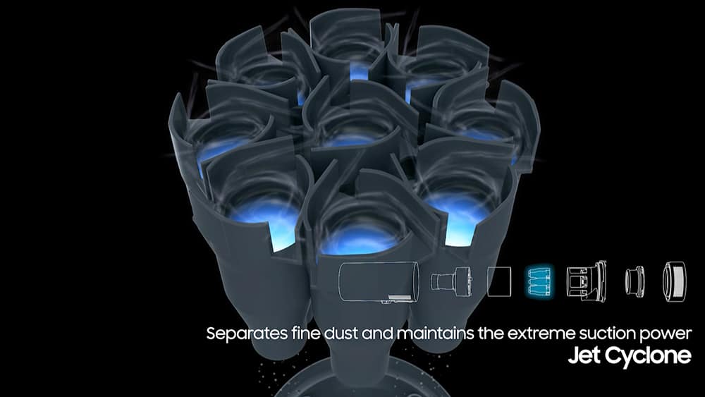 เครื่องดูดฝุ่นไร้สาย Samsung Jet ช่วยให้บ้านของคุณสะอาดหมดจด และมั่นใจได้ว่าอากาศสะอาดมากกว่า ด้วยระบบการกรอง HEPA 5 ชั้น มั่นใจในแรงดูดอันทรงพลังต่อเนื่องยาวนานกว่า Samsung Jet ช่วยให้คุณทำความสะอาดได้อย่างสบายไร้กังวล ด้วยมอเตอร์ดิจิทัลอินเวอร์เตอร์ (Digital Invertor) ที่สามารถป้อนกำลังไฟได้อย่างเหมาะสม ให้เครื่องดูดฝุ่นสร้างแรงดูดสูงสุดถึง 200 วัตต์ ทำงานร่วมกับระบบ Jet Cyclone ที่มีช่องอากาศเข้าถึง 27 ช่อง ช่วยลดการสูญเสียแรงดูดให้น้อยที่สุด