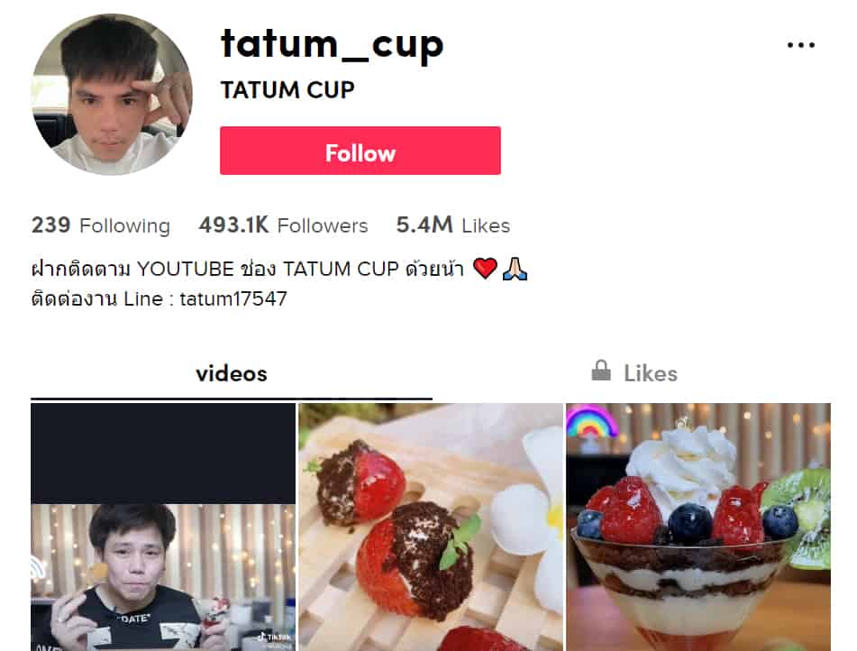 สายหวานต้องห้ามพลาด หากเวลาอยู่บ้านแล้วอยากกินขนมแต่ไม่อยากกินเยอะเพราะยังติดกลัวอ้วน เปิดดูคลิปแล้วทำตามได้ง่ายๆ แบบสั้น กระชับ จบในทุกขั้นตอนกับครีเอเตอร์ @tatum_cup ที่บอกเลยว่าแต่ละเมนูที่ทำนั้นใครที่เป็นสายคาเฟ่ต้องไม่พลาด อย่างเมนู มาการองสตรอเบอรี่ ที่ดูเป็นเมนูที่ทำยาก แต่บอกรายละเอียดตั้งแต่ขั้นตอนการทำและวัตถุดิบที่ใช้ พร้อมสร้างสีสันการเล่าเรื่องด้วยความสนุกติดตลกที่ดูแล้วต้องยิ้มตาม จนสร้างยอดวิวไปได้ถึง 4.8 ล้าน