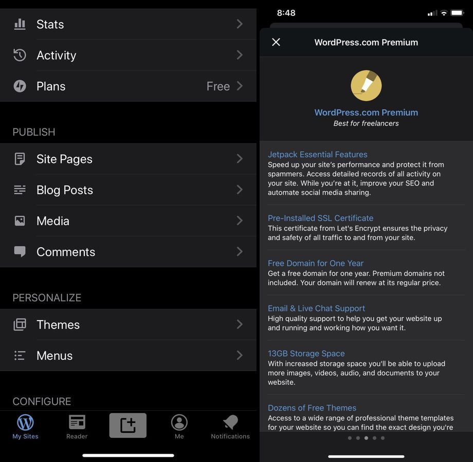 โดยปกติแล้วแอป WordPress บน iOS นั้นเปิดให้ผู้ใช้สามารถทำการติดตั้งโดเมน สร้างเว็บไซต์ และเข้าถึงโดเมนอีเมลได้ แต่ไม่มีการเปิดให้ผู้ใช้งานจ่ายเงินเพิ่มเติมภายในแอปเพื่อสามารถเข้าถึงฟีเจอร์อื่นๆ ได้มากขึ้นกว่าเดิม ด้วยเหตุนี้เอง WordPress จึงได้พัฒนาระบบจ่ายเงินผ่านเว็บไซต์ขึ้นมา แต่ดูเหมือนจะขัดๆกับนโยบายของ App Store ของ Apple ที่ให้มีระบบจ่ายเงินภายในแอป หรือ in-app purchase