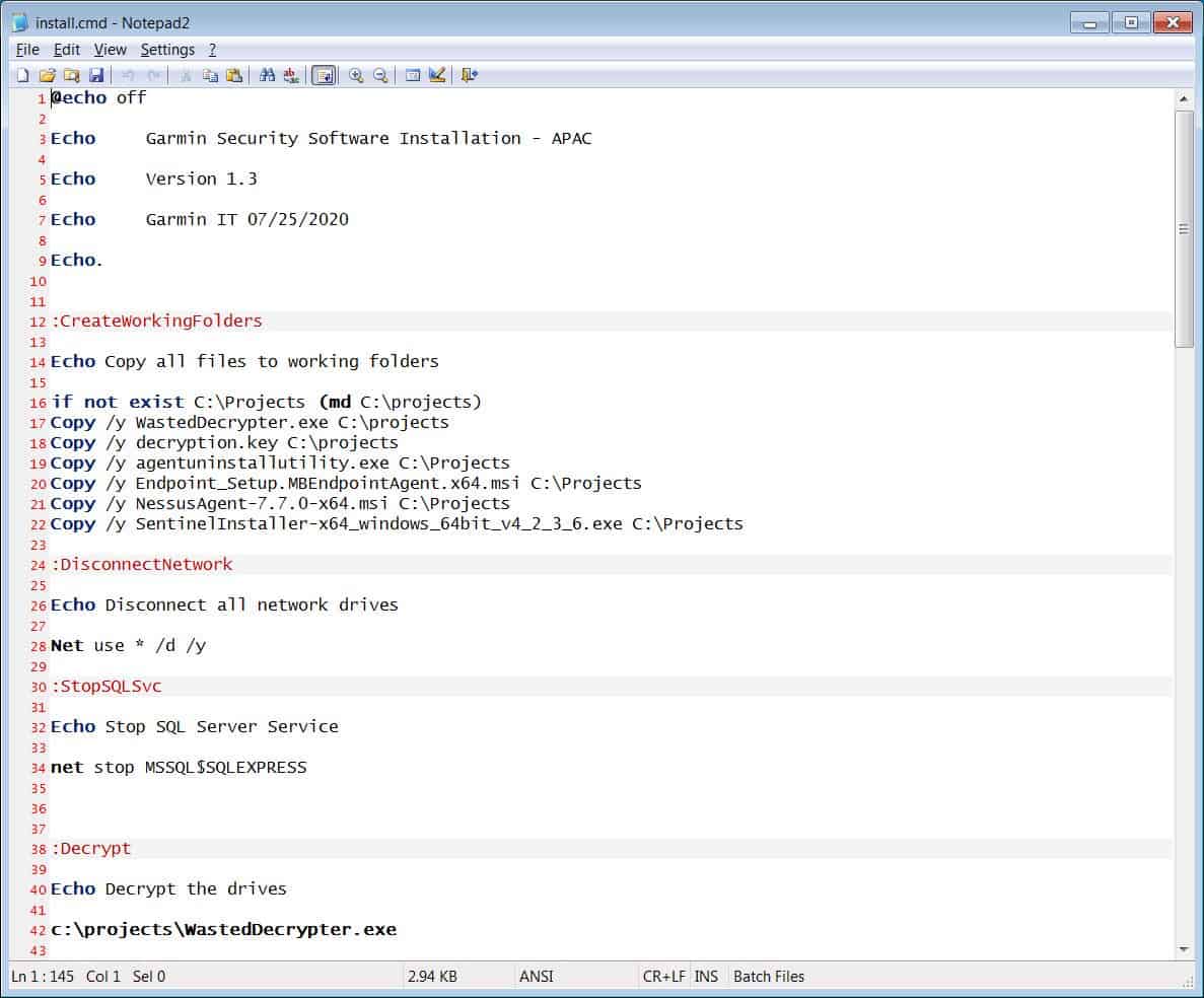และวันนี้ (3 สิงหาคม) BleepingComputer ได้สิทธิ์เข้าถึงไฟล์ที่ประมวลผลได้จากแผนกไอทีของ Garmin เพื่อถอดรหัสเวิร์คสเตชั่น และทำการติดตั้งซอร์ฟแวร์ระบบความปลอดภัยหลายตัวบนเครื่อง