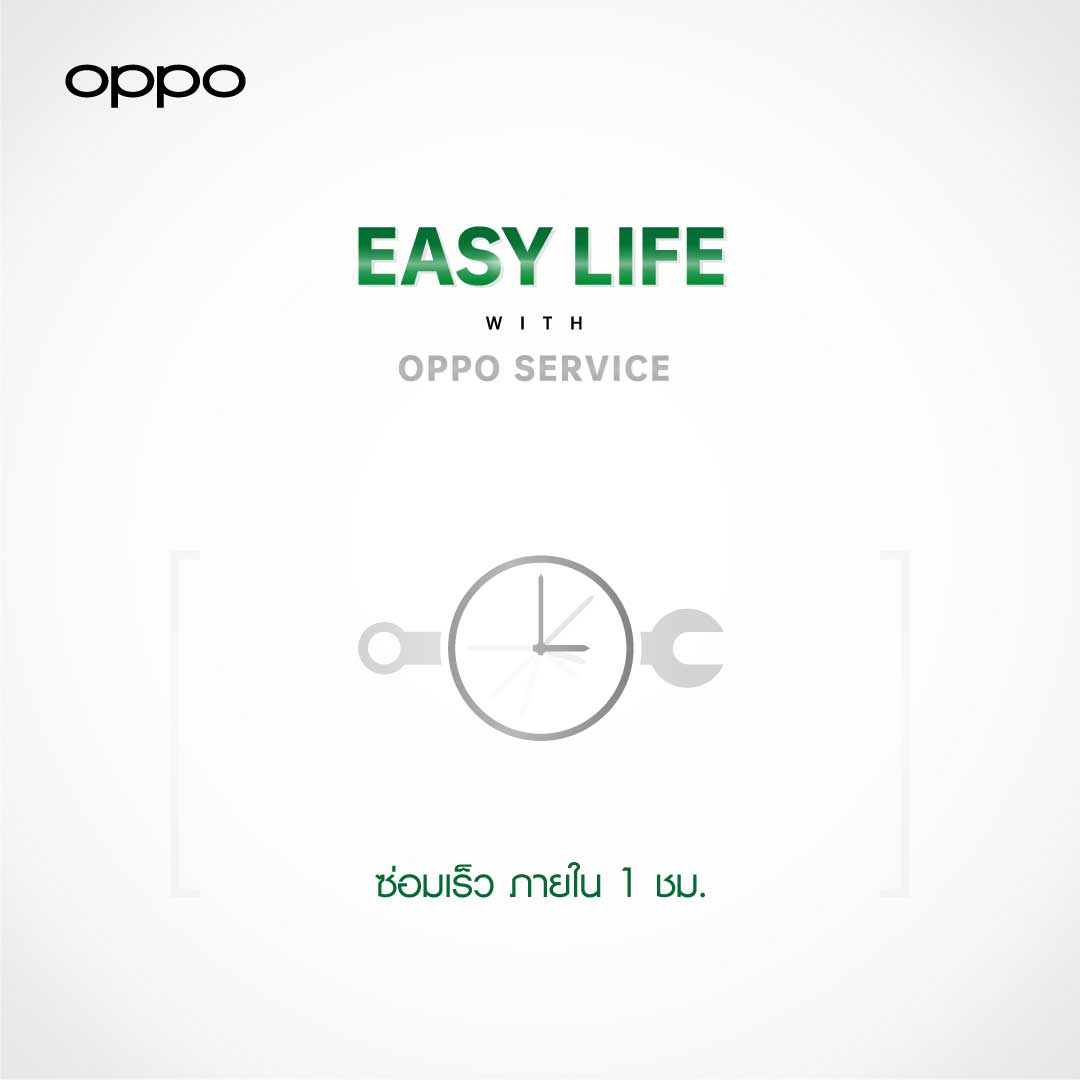 โดยบริการซ่อมเร็วภายใน 1 ชั่วโมงจาก OPPO Service Center เป็นการการันตีถึงความพร้อมและความรวดเร็วในการบริการจาก OPPO ในราคาที่เข้าถึงได้ เพื่อให้ผู้ใช้ OPPO มีชีวิตที่ง่ายขึ้น