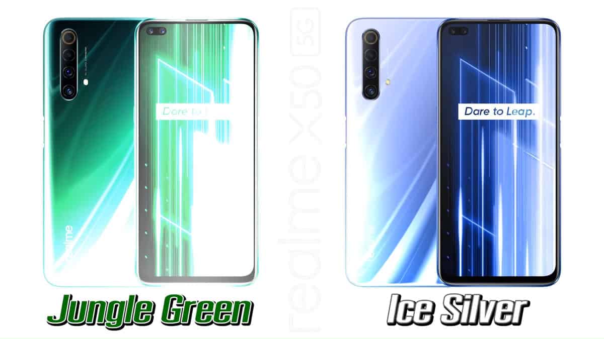 realme X50 5G ดีไซน์อาจจะดูคล้ายๆ กับรุ่นพี่ realme X50 Pro 5G แต่เพื่อไม่ให้สับสนทาง realme เขาจึงแบ่งเฉดสีเพื่อไม่ให้จำสับสน realme X50 5G จะมีด้วยกัน 2 สี ก็คือ สีเขียว Jungle Green และ สีเงิน Ice Silver