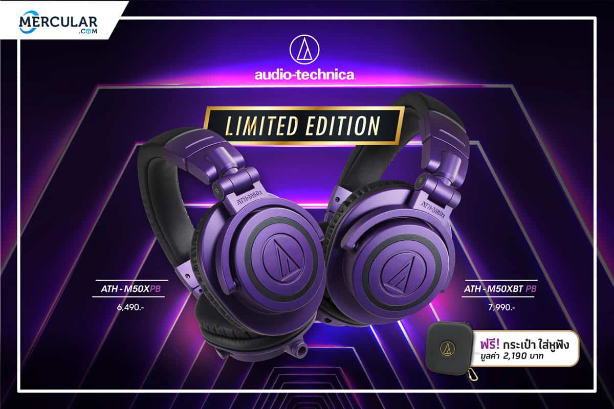 โดยหูฟังรุ่น ATH-M50x BT Purple Black และรุ่น ATH-M50x Purple Black จะวางจำหน่ายแล้ววันนี้ที่ Mercular สิทธิพิเศษซื้อวันนี้เมื่อซื้อ หูฟัง Limited Edition แถมกระเป๋าใส่หูฟัง Audio-Technica ฟรี (มูลค่าใบละ 2,190 บาท )สินค้ามีจำนวนจำกัด สำหรับสาวก “ออดิโอ-เทคนิก้า” ที่ชื่นชอบหูฟังมอนิเตอร์เสียง หรือ หูฟังที่ครองใจคนดนตรี สามารถหาซื้อคอลเลคชั่นพิเศษ Limited Edition ประจำปี 2020 ได้แล้ววันนี้ ได้ที่ตัวแทนจำหน่ายของ Audio-Technica ได้เร็วๆนี้ สามารถติดตามรายละเอียดเพิ่มเติมผ่านทาง www.facebook.com/AudioTechnica.Thailand และซื้อได้ที่ https://www.mercular.com/audio-technica