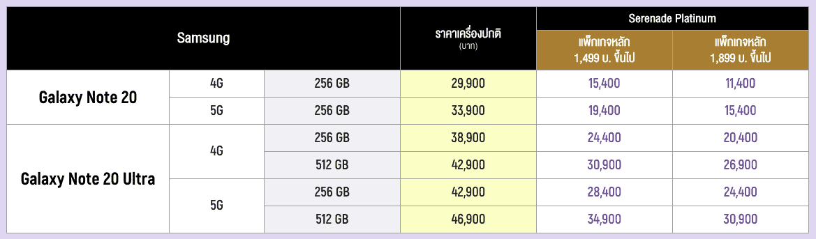 - Galaxy Note20 Ultra (5G) 12GB + 256GB ราคา 42,990 บาท