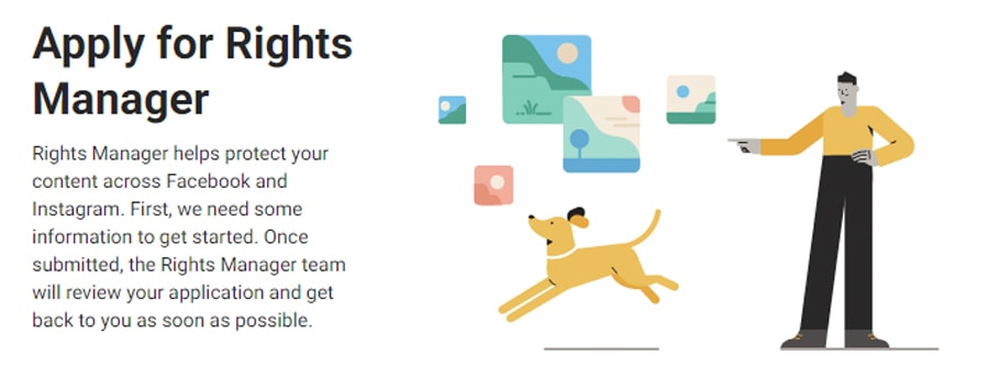 เราขอแนะนำ Rights Manager เวอร์ชั่นใหม่สำหรับรูปภาพ ที่นำเทคโนโลยีการจับคู่ภาพมาช่วยครีเอเตอร์และพับลิชเชอร์ป้องกันและจัดการกับคอนเทนต์รูปภาพของพวกเขา โดยแอดมินเพจสามารถส่งคำร้องของคอนเทนต์รูปภาพที่พวกเขาต้องการจะป้องกัน จากนั้น Rights Manager จะหาจับคอนเทนต์รูปภาพทั้งจากใน Facebook และ Instagram
