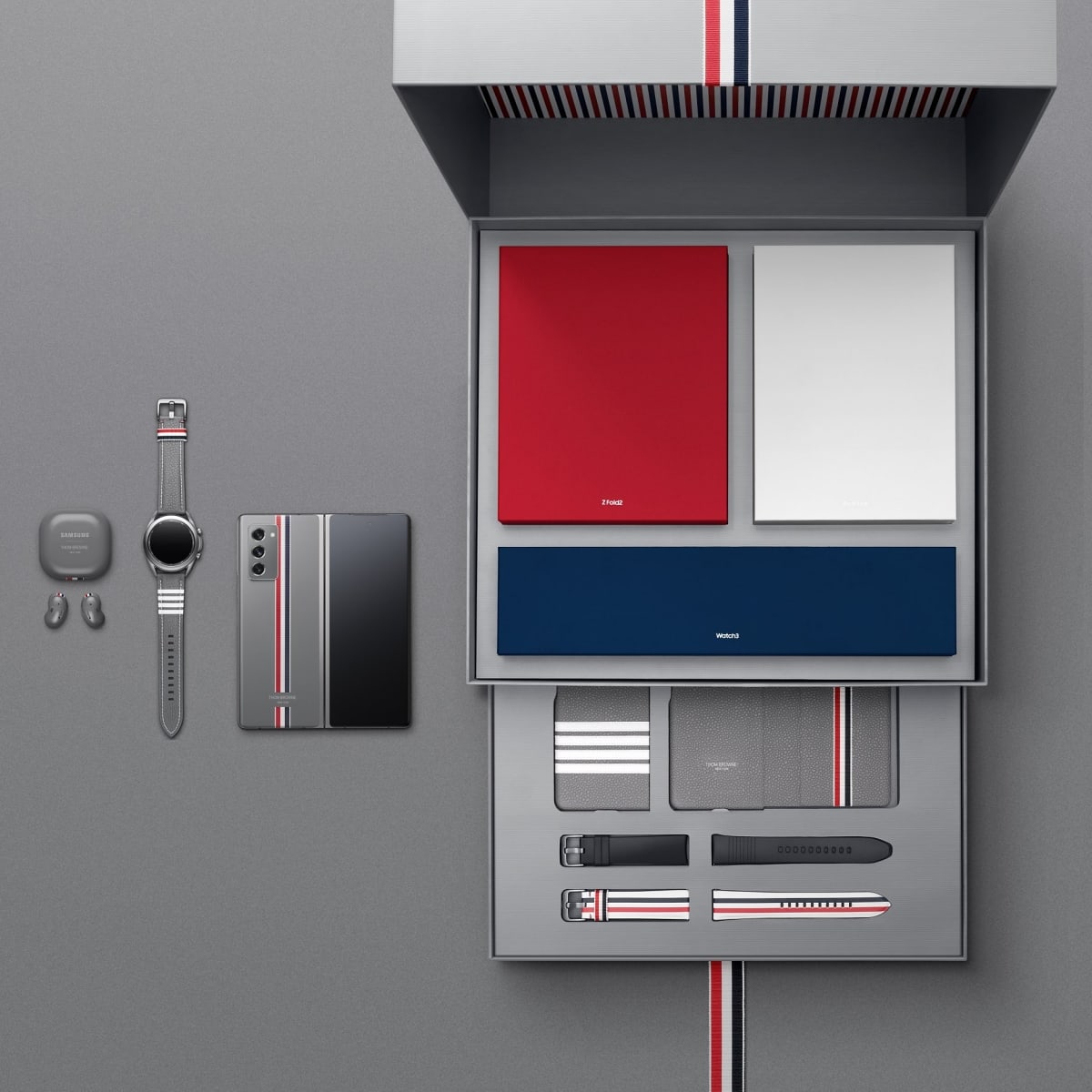 ครั้งแรกของประเทศไทยที่เปิดจองคอลเลคชันสมาร์ทโฟนสุดลักซ์ชัวรี่ ผลงานการร่วมมือครั้งใหม่ของซัมซุงและแบรนด์แฟชั่นไฮเอนด์ระดับโลกอย่าง Thom Browne โดยในคอลเลคชันประกอบไปด้วย Galaxy Z Fold 2 5G, Galaxy Watch3, Galaxy Buds Live และ Accessories ต่างๆ โดยทั้งหมดมาในดีไซน์สีเทาพร้อมแถบสีน้ำเงินและสีแดงสุดไอคอนิกของ Thom Browne โดยประเทศไทยถือเป็น 1 ใน 7 ประเทศแรกของโลกที่ได้เปิดจองคอลเลคชันสุดเอ๊กซ์คลูซีฟนี้ ในวันที่ 2 กันยายน 2563 ผ่านทาง Samsung.com เท่านั้น