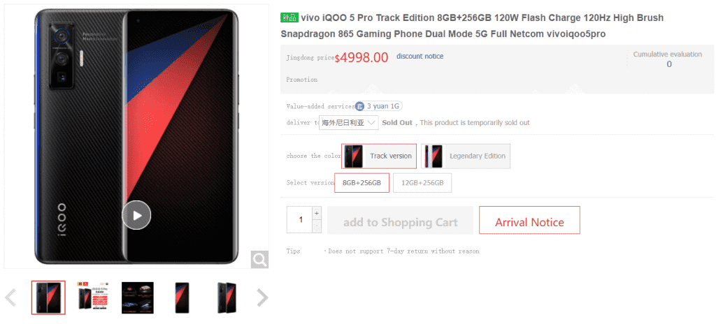 iQOO 5 วางจำหน่ายในราคา 3998 หยวน (18,400 บาท) ส่วน iQOO 5 Pro ที่มี Fast Charge 120W จะวางจำหน่าย 10 กันยายนในราคา 4998 หยวน (23,000 บาท)