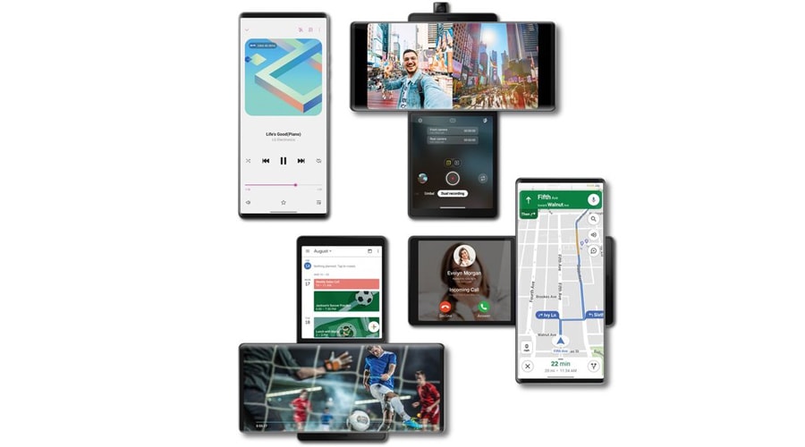 นอกจากนี้ LG ยังมีกล้องหลังที่เป็นเลนส์ Ultra Wide 2 ตัวเพื่อจับภาพในขณะที่จอแสดงผลหลักอยู่ในแนวนอนแบบหมุนได้ พร้อมเซนเซอร์แบบหมุนเพื่อให้ตรงการวางแนวของภาพ และยังมีการติดตั้งเซนเซอร์ hexa motion แบบใหม่ที่ช่วยในการป้องกันสัญญาณรบกวน อีกหนึ่งฟีเจอร์ที่ไม่ควรพลาดเลย คือ การถ่ายวิดีโอด้วยกล้องหน้า และกล้องหลังพร้อมกันในเวลาเดียว