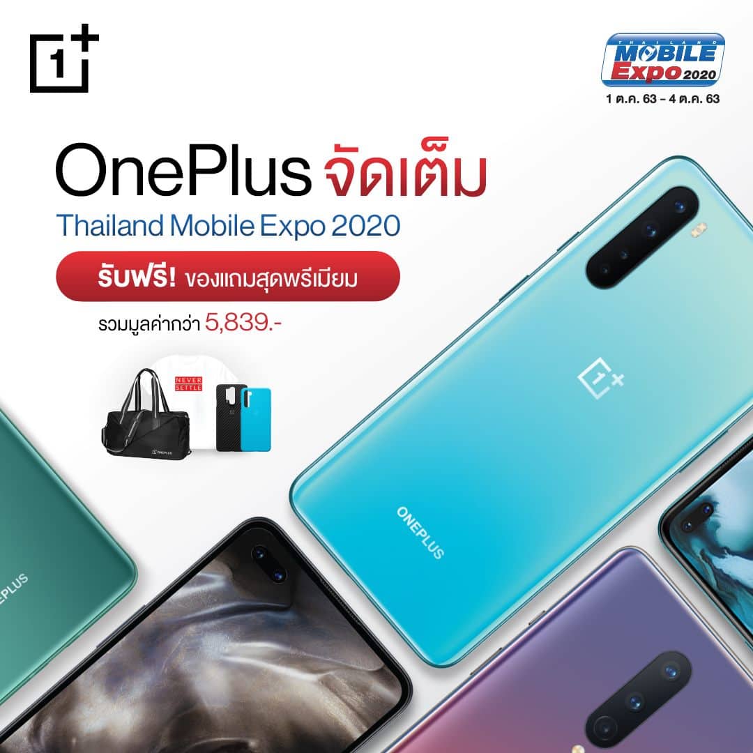 OnePlus จัดเต็มภายในงาน Thailand Mobile Expo 2020 ขนทัพสมาร์ทโฟนทุกรุ่น กับราคาใหม่ สุดคุ้ม และรุ่นใหม่ล่าสุดอย่าง OnePlus Nord พร้อมรับของแถมสุดพรีเมียม จากแต่ละช่องทางการจำหน่ายอีกมากมาย ในระหว่างวันที่ 1 – 4 ตุลาคม 63