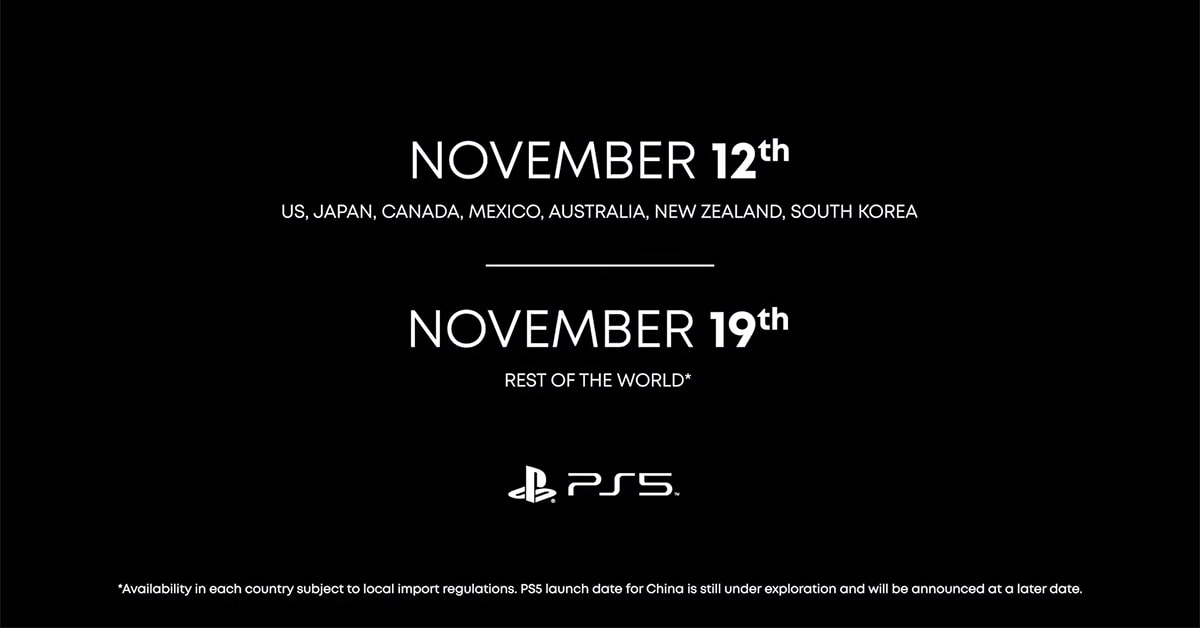 และสิ่งที่ทุกคนรอคอยในงานนี้ ก็คือการประกาศวันวางจำหน่าย PlayStation 5 อย่างเป็นทางการ 12 พฤศจิกายน 2563 โดยจะเริ่มจำหน่ายก่อนในสหรัฐอเมริกา, ญี่ปุ่น, แคนาดา, เม็กซิโก, ออสเตรเลีย, นิวซีแลนด์ และ เกาหลีใต้ และหลังจากนั้น 1 อาทิตย์ วันที่ 19 พฤศจิกายน 2563 จะทำการเปิดวางจำหน่ายทั่วโลก (ยกเว้นประเทศจีนจะมีการประกาศวันวางจำหน่ายภายหลัง)