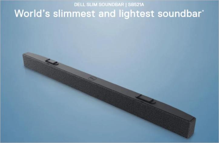 Dell ได้เปิดตัว Slim Soundbar โดยเป็นผลิตภัณฑ์เครื่องเสียงรุ่นล่าสุด ได้รับการออกแบบสำหรับใช้คู่กับจอมอนิเตอร์บางรุ่นได้อย่างสมบูรณ์แบบ อีกทั้งยังนับว่าเบาและบางที่สุดในโลกอีกด้วย