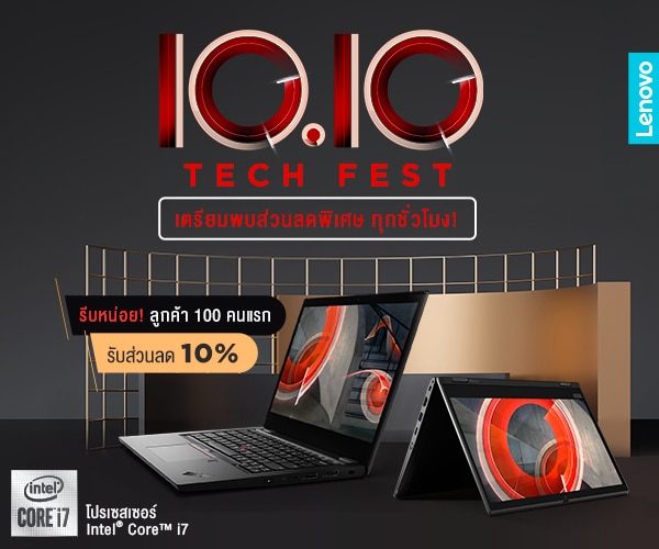 - คูปองโค้ดแบบเอ็กซ์คลูซีฟ สำหรับลดออนท็อป 10% จำนวน 100 โค้ด แจกให้ลูกค้า 100 ท่านแรก ที่ซื้อผลิตภัณฑ์ทาง Lenovo Online Store t.ly/gUTT เกิน 40,000 บาท