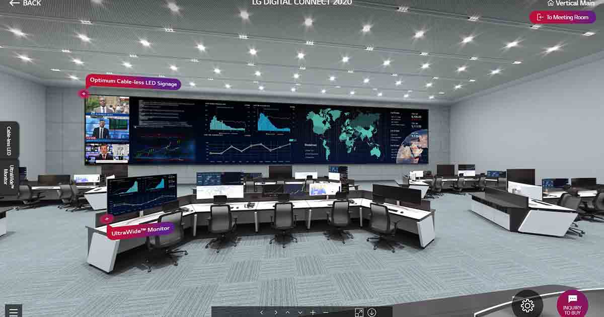 ด้วยสถานการณ์โรคระบาดที่เกิดขึ้นในปีนี้ ธุรกิจทั้ง B2B หรือ B2C ต่างหันมาให้ความสำคัญกับโชว์รูมออนไลน์มากขึ้น โชว์รูมออนไลน์จึงกลายเป็นเครื่องมือสำคัญที่ช่วยให้แบรนด์ต่าง ๆ นำเสนอสินค้าและบริการได้อย่างง่ายดาย และยังช่วยให้ลูกค้าหาข้อมูลต่าง ๆ เพื่อประกอบการตัดสินใจซื้อได้อย่างมีประสิทธิภาพ แอลจีจึงเปิดตัวแพลตฟอร์ม LG Digital Connect (DC) 2020 โชว์รูมเสมือนจริงสำหรับผลิตภัณฑ์จอแสดงผลเชิงพาณิชย์ ที่ผสานข้อมูลเกี่ยวกับนวัตกรรมจอเชิงพาณิชย์เข้ากับเทคโนโลยีเสมือนจริงไว้ได้อย่างครบถ้วน ให้ผู้บริโภคสัมผัสประสบการณ์เช่นเดียวกับการเดินชมสินค้าภายในโชว์รูม พร้อมระบุข้อกำหนดเกี่ยวกับผลิตภัณฑ์และงบประมาณที่ต้องการ เพื่อรอการติดต่อกลับจากแอลจีได้อย่างสะดวกสบายโดยไม่ต้องเดินทางไปถึงโชว์รูม