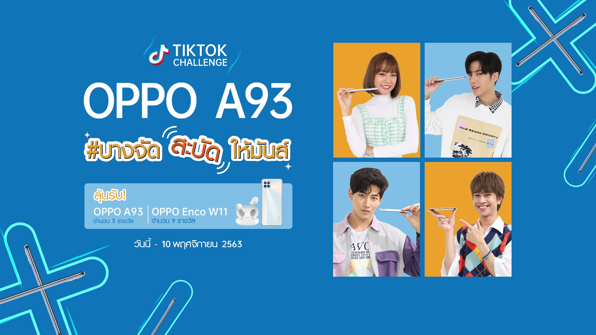 นอกจากนี้ OPPO ยังเอาใจคนวัยมันส์ ชวนสายแดนซ์ร่วมเต้นสนุกสุดเหวี่ยงกับ TikTok Challenge ในกิจกรรม #บางจัดสะบัดให้มันส์ เพื่อลุ้นรับ OPPO A93 จำนวนทั้งสิ้น 3 รางวัล และหูฟังอัจฉริยะ OPPO Enco W11 จำนวน 9 รางวัล รวมมูลค่ากว่า 38,000 บาท เริ่มโชว์สเต็ปได้แล้ววันนี้ถึง 10 พฤศจิกายน 2563 พร้อมติดแฮชแทค #OPPOA93สนุกทุกโมเมนต์ #บางจัดสะบัดให้มันส์ #OPPOThailand บนแอปฯ TikTok เท่านั้น โดยสามารถเข้าร่วมกิจกรรมได้เลยที่ https://vt.tiktok.com/ZSQvV7hf/