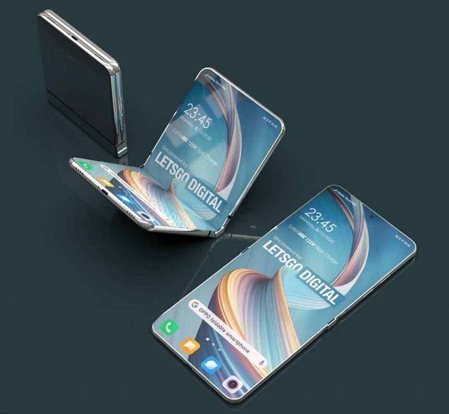 ล่าสุดมีข้อมูลจาก LetsGoDigital ที่แสดงให้เห็นว่า Oppo กำลังซุ่มพัฒนาอุปกรณ์หน้าจอพับได้อยู่ โดยเขียนชื่อรุ่นเอาไว้ว่า Oppo Reno Flip 5G โดยเมื่อปี 2019 ได้มีต้นแบบโทรศัพท์พับได้ของ Oppo ปรากฏทางออนไลน์ อย่างไรก็ตาม ทาง Oppo ยังไม่มีการเปิดตัวผลิตภัณฑ์ใดๆ ที่เกี่ยวข้องกับหน้าจอแบบพับได้ ทั้งนี้มีรายงานล่าสุดเผยว่าผู้ผลิตโทรศัทพ์จากจีนได้ยื่นขอสิทธิบัตรโทรศัพท์หน้าจอพับได้แล้ว โดยภาพเรนเดอร์ต่อไปนี้เป็นข้อมูลสิทธิบัตรของสมาร์ทโฟนหน้าจอพับได้