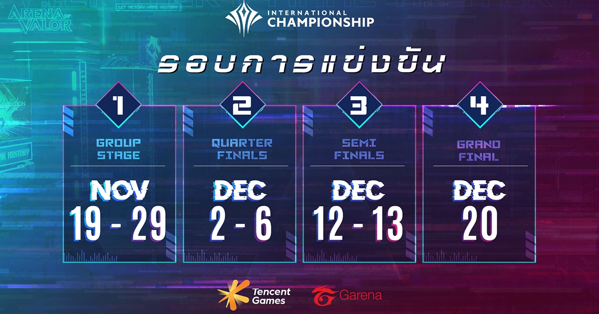 RoV เตรียมเฮ! พบกับการกลับมาครั้งยิ่งใหญ่ของทัวร์นาเมนต์ RoV ระดับนานาชาติ การแข่งขัน Arena of Valor International Championship 2020 (AIC 2020) ในระบบออนไลน์เต็มรูปแบบ พร้อมลูกเล่นใหม่ให้ผู้ชมทางบ้านได้ร่วมสนุกกับประสบการณ์โลกเสมือนจริงในช่วงการถ่ายทอดสด พร้อมกัน 19 พฤศจิกายนนี้