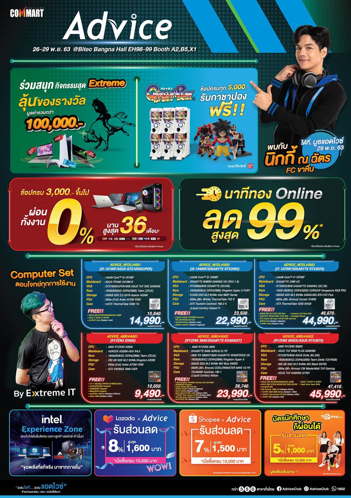 ในงาน Commart Xtreme 2020 นี้ แอดไวซ์ยกขบวนสินค้าไอทีหลากหลายแบรนด์ดังในราคาสุดพิเศษ โปรแรง แจกกระหน่ำ ส่งท้ายปี มาให้ทุกท่านได้เลือกช้อปกันอย่างจุใจ ไม่ว่าจะเป็น Notebook, Desktop PC, All in one, Gaming Gear, D.I.Y คอมประกอบ สเปคเทพ และอุปกรณ์ไอทีครบครัน โดยภายในงานมีโปรโมชั่นพิเศษมากมาย อาทิ ช้อปครบ 3,000 บาทขึ้นไป ผ่อน 0% นานสูงสุด 36 เดือน พร้อมร่วมลุ้นสินค้าราคาพิเศษ กับ แอดไวซ์ นาทีทอง Online ลดสูงสุด 99% ทุกวัน ติดตามรายละเอียดและร่วมสนุกได้ที่ Fanpage : AdviceClub