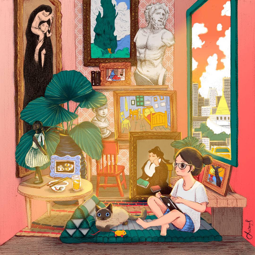 เทรนด์ดังกล่าวได้สร้างแรงบันดาลใจให้กับ มนัสวี โรจนพรรณ ศิลปินและนักวาดภาพประกอบคนไทย ด้วยเช่นกัน โดยเธอกล่าวว่า “พิพิธภัณฑ์ที่มีชื่อเสียงหลายแห่งทั่วโลกเปิดจัดแสดงนิทรรศการทางออนไลน์ในช่วงที่เกิดการแพร่ระบาด ช่วยให้ผู้คนที่ไม่มีโอกาสได้ไปเยี่ยมชมพิพิธภัณฑ์โดยตรงสามารถเพลิดเพลินกับประสบการณ์การเข้าชมพิพิธภัณฑ์เสมือนจริงได้จากที่บ้าน”