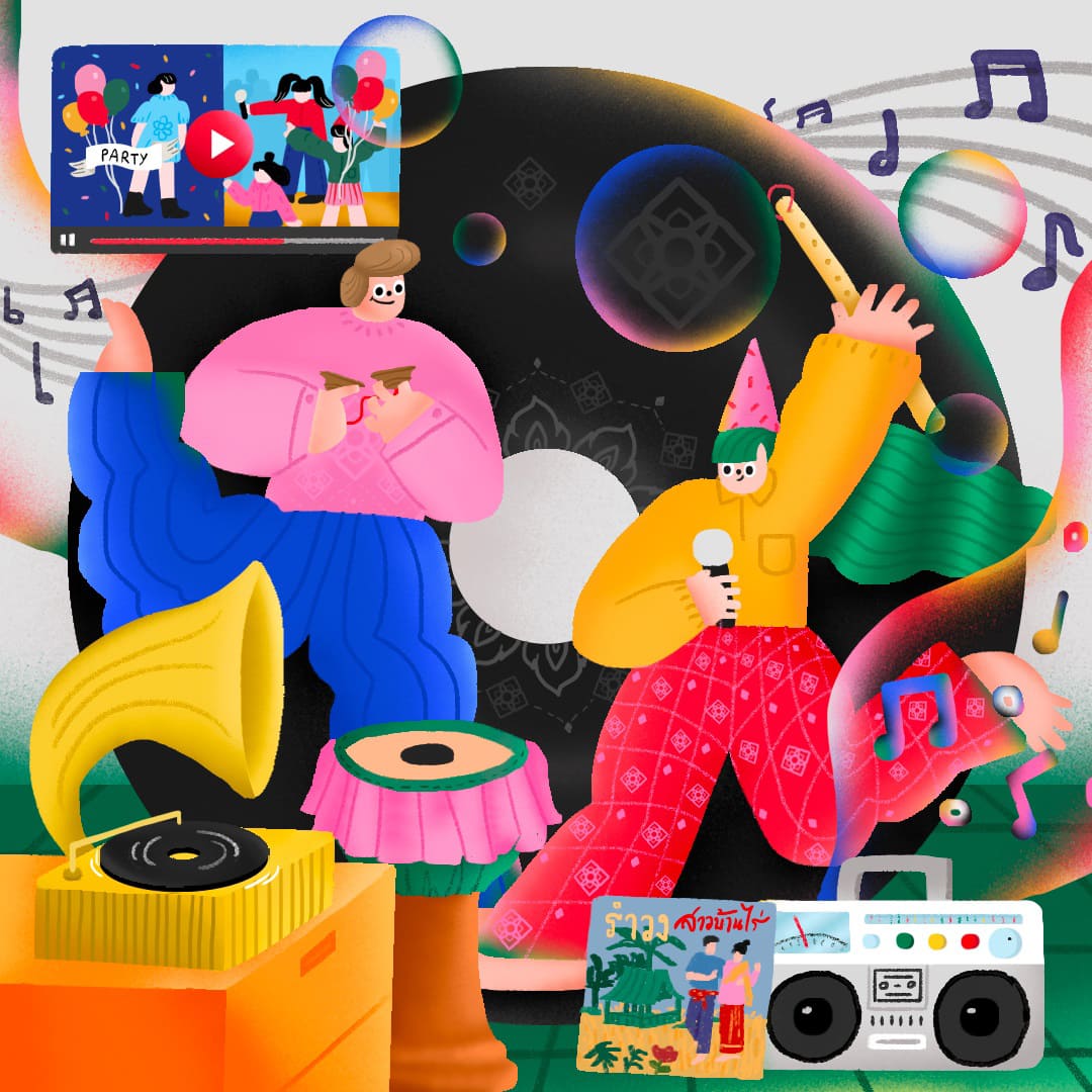ฐิติพร กลิ่นทโชติ นักวาดภาพประกอบและกราฟิกดีไซเนอร์ของไทย แชร์มุมมองว่า “ในช่วงล็อคดาวน์ ประชาชนยังคงสามารถสนุกสนานและผ่อนคลายอยู่ที่บ้าน ด้วยการเชื่อมต่อออนไลน์และเยี่ยมชมแพลตฟอร์มโซเชียลมีเดียต่างๆ เพื่อดูวิดีโอ ฟังเพลง และสังสรรค์กับเพื่อนๆ ในงานปาร์ตี้แบบเสมือนจริง”