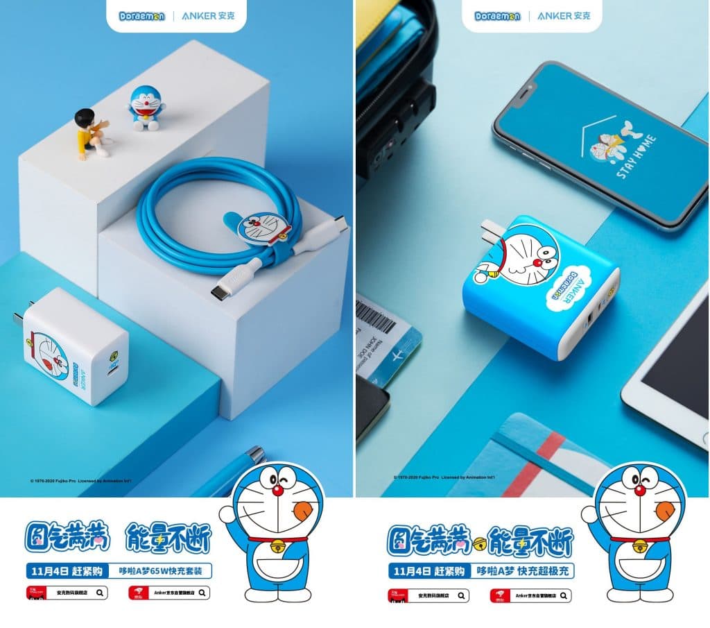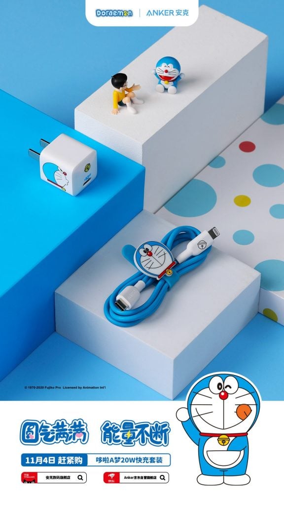 Anker เปิดตัวชุดอุปกรณ์เสริมสำหรับการชาร์จของ iPhones 12 ในธีม Doraemon ประกอบไปด้วยอะแดปเตอร์ 3 ชิ้น USB 2 เส้นและอะแดปเตอร์แบบไร้สาย โดยอุปกรณ์เสริมทั้งหมดจะวางจำหน่ายล่วงหน้าในวันพุธที่ 4 พฤศจิกายนนี้