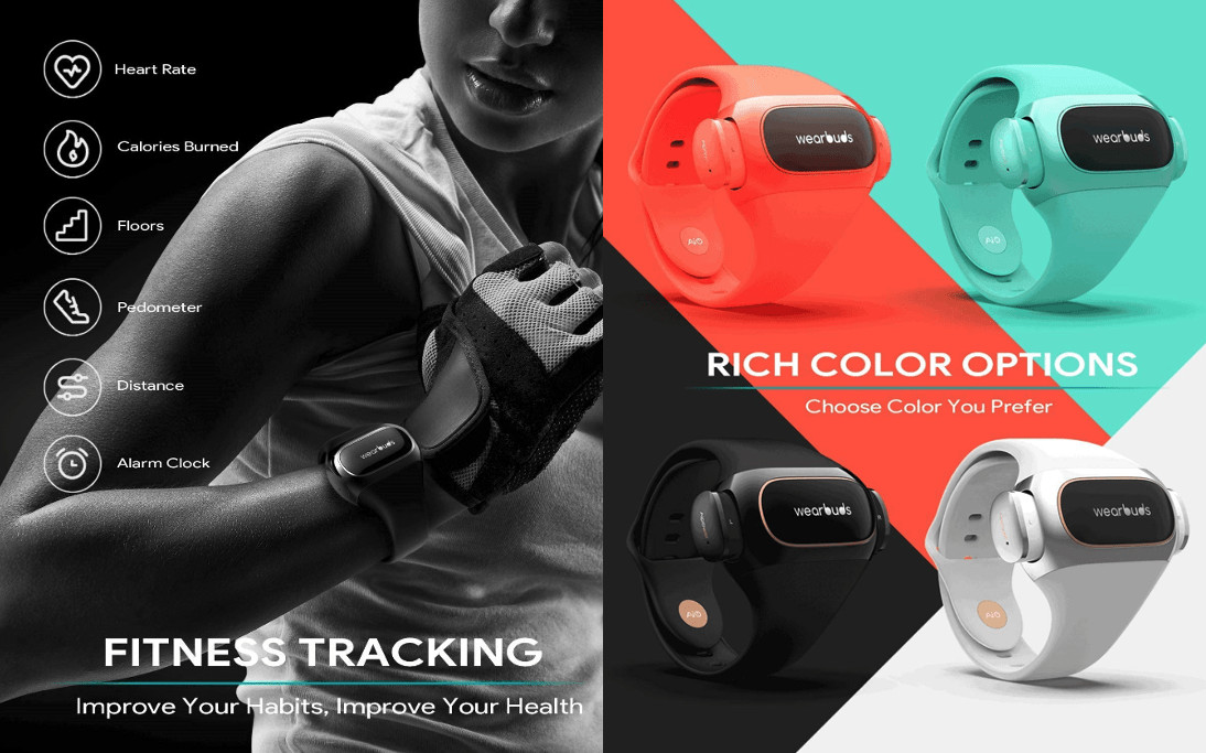 Wearbuds เป็นหูฟังไร้สาย Hi-Res ตัวแรกของโลก ที่ปฏิวัติวงการ Smart watch ให้เเตกต่างจากเดิม คุณสามารถออกกำลังกาย และชาร์จหูฟัง tws ในนาฬิกาข้อมือของคุณได้ ไม่ต้องพกพาหูฟังอีกต่อไป ตัวนาฬิกาสามารถทำหน้าที่ตรวจสอบอัตราการเต้นของหัวใจอย่างต่อเนื่องตลอด 24 ชั่วโมง, ตรวจสอบการนอนหลับ, pedometer, นับแคลอรี่, นับก้าวในการวิ่งเเละเดิน, และ ยังเป็น health tracker ได้อีกด้วย