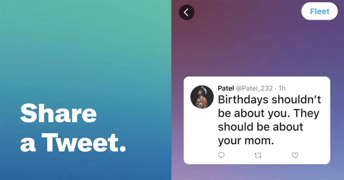 Twitter คือพื้นที่สนทนาสาธารณะ ผู้ใช้งานบางกลุ่มให้ความเห็นว่าการทวีตทำให้พวกเขารู้สึกไม่ค่อยสบายใจเพราะข้อความถูกเปิดเผยเป็นสาธารณะมากเกินไป ทวิตเตอร์จึงเปิดตัว “Fleets” ฟีเจอร์ใหม่ล่าสุด ที่ผู้ใช้งานทุกคนสามารถแบ่งปันความคิดเห็นที่แล่นแว้บเข้ามาถึงสิ่งที่เกิดขึ้นและสร้างสีสันในการสนทนารูปแบบใหม่ได้อย่างง่ายๆ