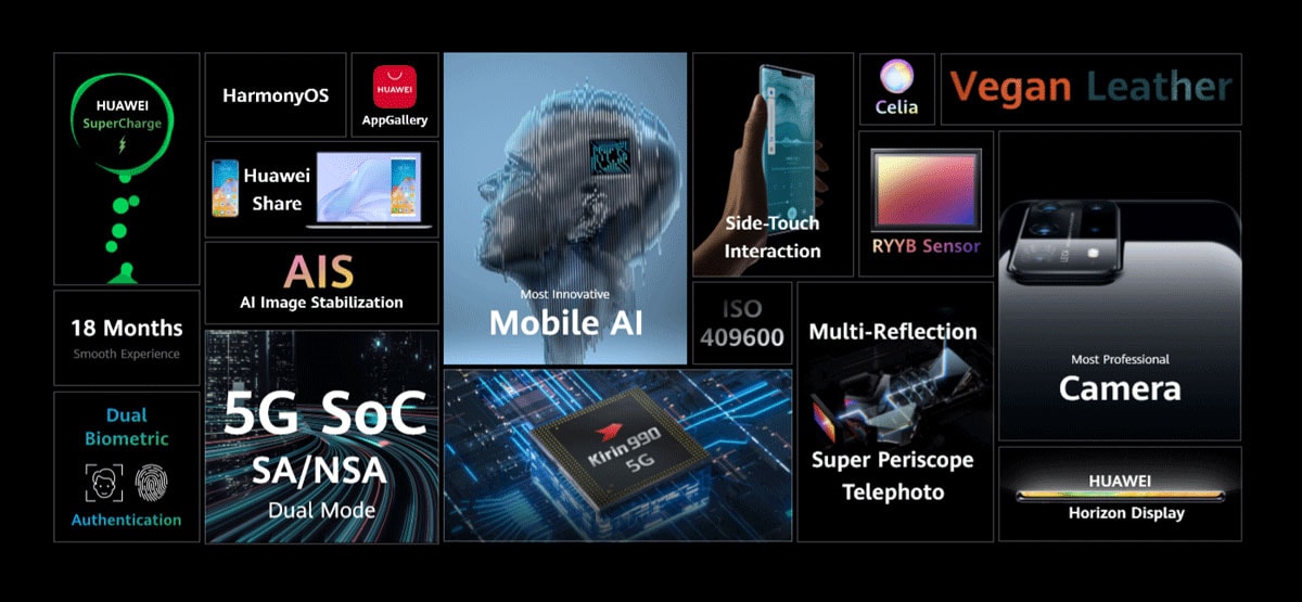 ตอบรับยุคแห่งความเร็วระดับ 5G สมาร์ทโฟน HUAWEI Mate 40 Series เป็นเจ้าแรกที่พัฒนาชิปเซ็ตแบบ 5G SoC หรือ System-on-Chip ขนาดเล็กที่สุด 5 นาโนเมตร ที่รวมเอาระบบและโมเด็ม 5G ไว้ในตัว ชิปเซ็ต Kirin 9000 ดังกล่าวมาพร้อมทรานซิสเตอร์กว่า 1.53 หมื่นล้านตัว ให้การประมวลผลที่รวดเร็วและทรงประสิทธิภาพ มาพร้อมการออกแบบโครงสร้าง CPU ให้ใช้พลังงานอย่างมีประสิทธิภาพถึง 3 ระดับ และ NPU ที่ประกอบด้วยนวัตกรรมโครงสร้าง ที่ผสานการทำงานระหว่างแกนหลักขนาดใหญ่ 2 แกน และ 1 แกนเล็ก รวมกับ 24-Core Mali-G78 GPU ให้กราฟฟิกลื่นไหล