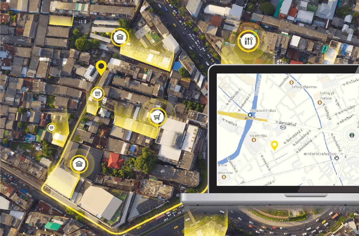 กลุ่มธุรกิจค้าปลีกและอีคอมเมิร์ซ ที่มีความท้าทายในเรื่องความรวดเร็วในการส่งมอบสินค้าและบริการให้กับลูกค้าที่มองหาความรวดเร็วและสะดวกสบาย สามารถใช้การวิเคราะห์พื้นที่ให้บริการของแต่ละสาขา (Service Area) ช่วยวางแผนให้ลูกค้าเกิดความพึงพอใจสูงสุดได้ นอกจากนี้ ยังสามารถนำไปใช้ในการพิจารณาเปิดปิดสาขาให้เหมาะสมกับสภาพการแข่งขันในยุคอีคอมเมิร์ซได้ด้วย 2) กลุ่มธุรกิจภาคบริการการจัดส่ง สามารถใช้เครื่องมือช่วยวางแผนการจัดส่งหลายเที่ยวและจุดหมายหลายจุด เพิ่มประสิทธิภาพกับแอปพลิเคชันสร้างเส้นทางที่ดีที่สุดในการจัดลำดับการส่งล่วงหน้าให้กับพนักงานจัดส่ง และติดตามสถานะการขนส่งสินค้า ประหยัดต้นทุนและลดเวลาการทำงาน 3) กลุ่มธุรกิจซอฟต์แวร์ สำหรับการพัฒนาแอปพลิเคชันให้กับธุรกิจต่างๆ การเชื่อมต่อกับระบบแผนที่จะช่วยให้ลูกค้าของธุรกิจสามารถค้นหาและนำทางได้สะดวกสบายยิ่งขึ้น