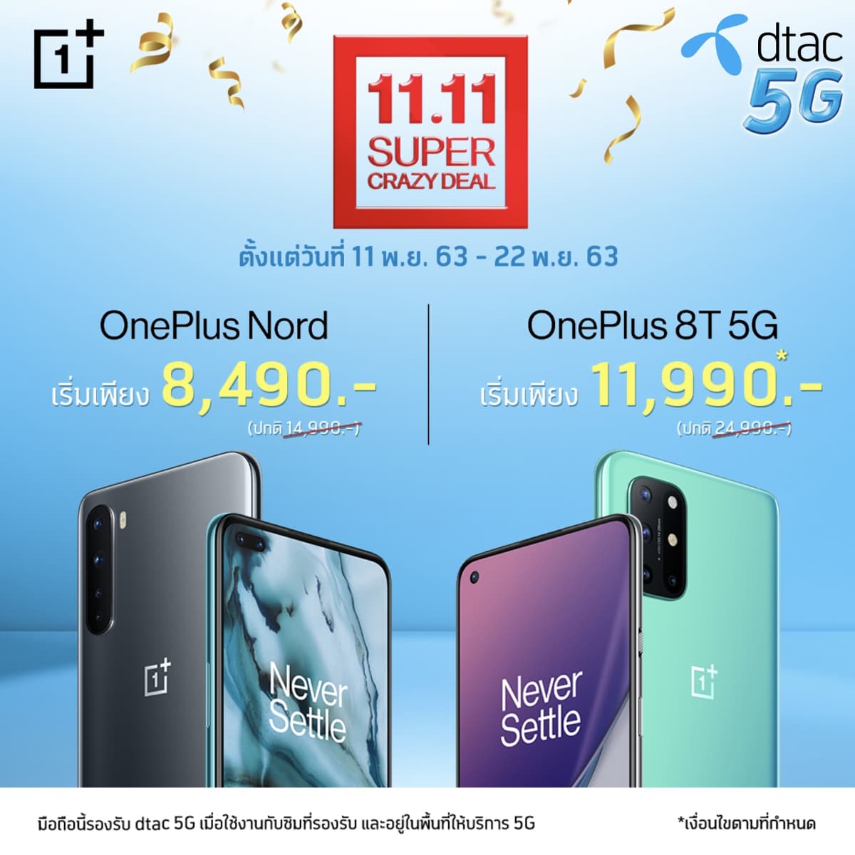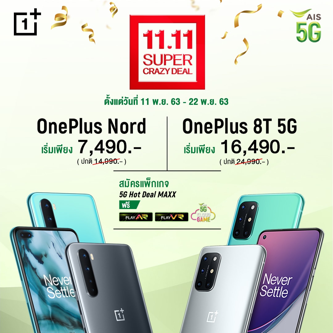 สำหรับ OnePlus Nord เริ่มต้นเพียง 8,490 บาท เมื่อสมัครแพ็กเกจรายเดือน 699 บาท พร้อมจ่ายค่าบริการล่วงหน้า 2,000 บาท ตั้งแต่วันที่ 11 – 22 พฤศจิกายน 2563