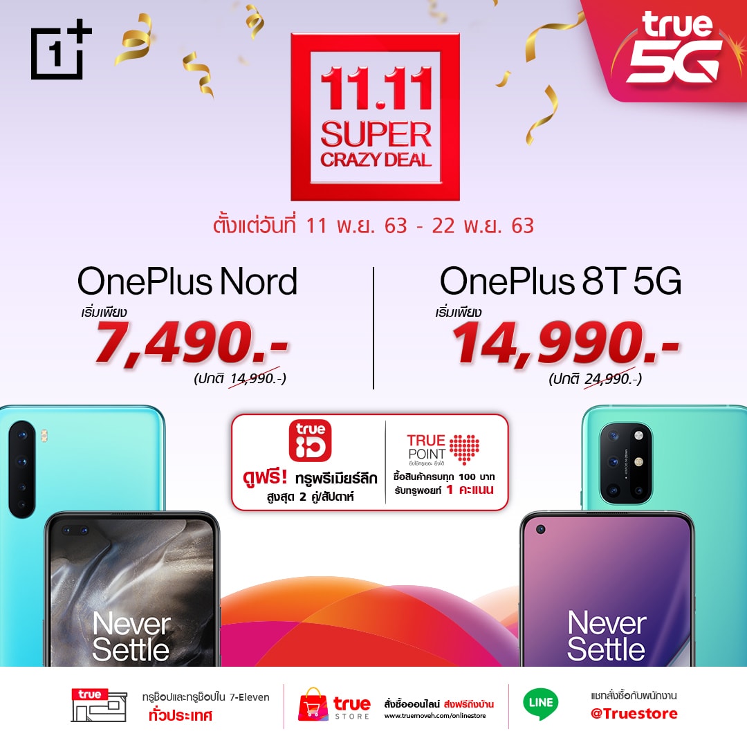 และปิดท้ายด้วยโปรโมชันจาก Truemove H กับ OnePlus Flash Sale ราคาสุดพิเศษแบบนี้ต้องรีบคว้า ถึง 22 พฤศจิกายน 2563 เท่านั้น กับ OnePlus Nord เริ่มเพียง 7,490 บาท จากราคาปกติ 14,990 บาท และ OnePlus 8T 5G เริ่มเพียง 14,990 บาท จากราคาปกติ 24,990 บาท