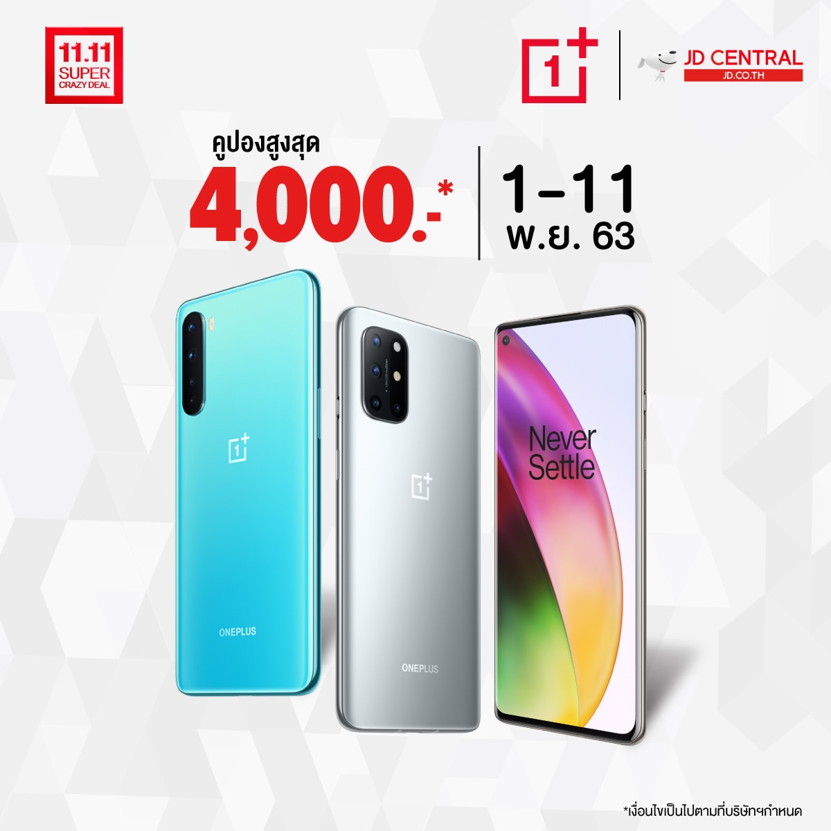 ลดทันที 1,000 บาท สำหรับสมาร์ทโฟน OnePlus Nord เฉพาะวันที่ 11.11 วันเดียวเท่านั้น ตลอดทั้งวัน
