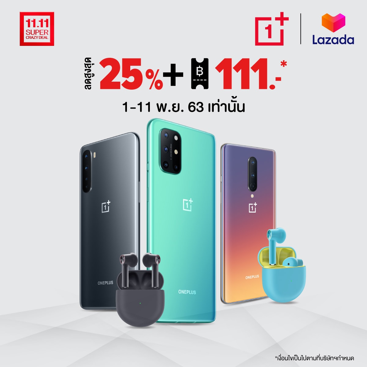เริ่มที่ช่องทาง LAZADA มอบคูปองส่วนลดสูงสุด 25% กับสมาร์ทโฟน OnePlus 8T 5G ลดสูงสุดถึง 4,000 บาท