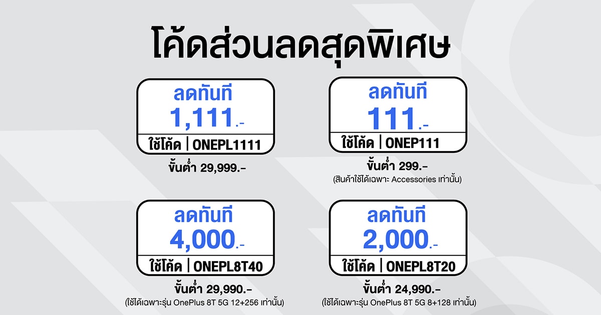 เท่านั้นยังไม่พอยังมีคูปองส่วนลด 111 บาทใช้สำหรับซื้อ OnePlus Accessories เท่านั้น