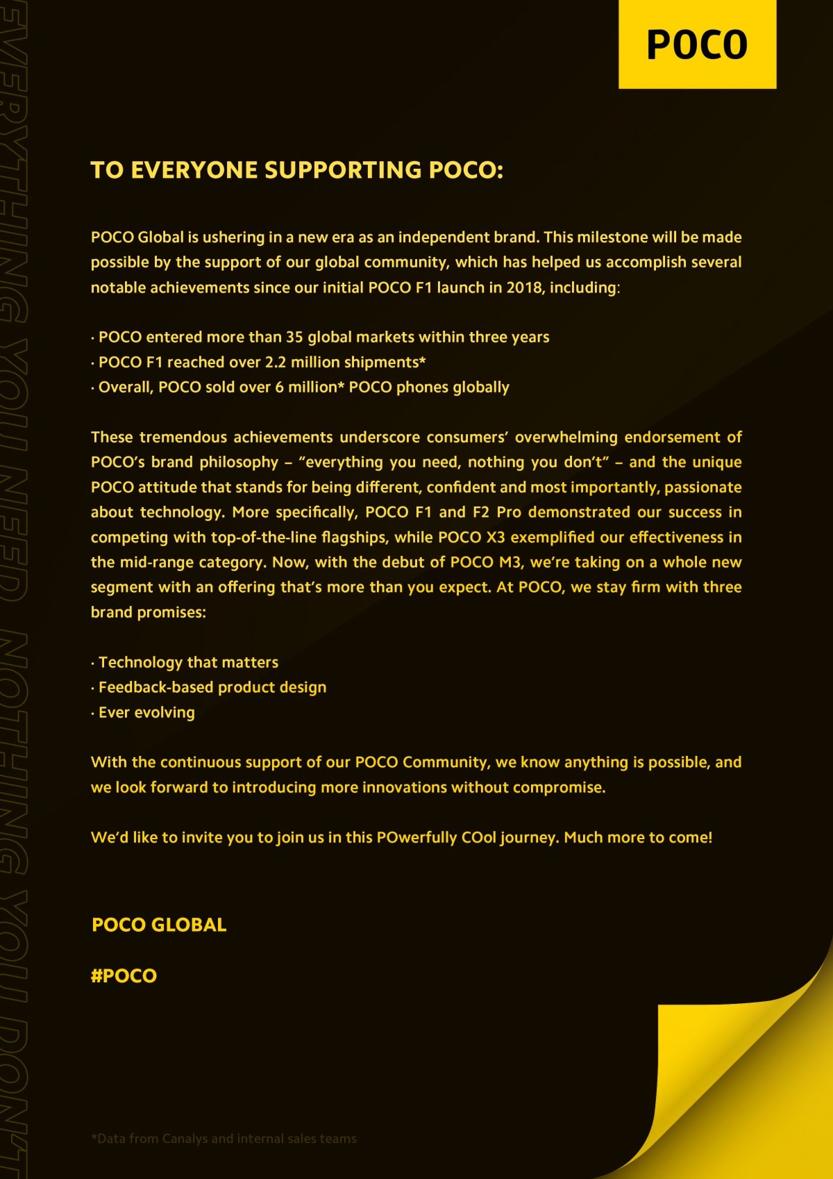 และนี่คือ จดหมายที่บริษัทส่งไปหาแฟนๆ ที่สนับสนุน Poco