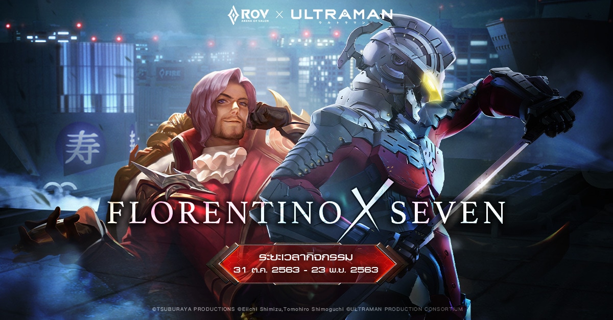 RoV ได้ปล่อยสกิน SEVEN ของฮีโร่ Florentino เมื่อวันที่ 31 ตุลาคมที่ผ่านมา ผู้เล่นสามารถรับสกิน SEVEN ฟรี โดยการทำภารกิจที่กำหนดให้สำเร็จ ในซีรีส์ ULTRAMAN ตัวละคร SEVEN นั้นโดดเด่นและมีความสำคัญมาก เพราะถือว่าเป็นอาจารย์ที่สอนชินจิโร่ให้เป็น ULTRAMAN ที่ทำตามกฎในการปกป้องโลกอย่างเคร่งครัด ทั้งรูปลักษณ์และเอฟเฟกต์สกิลสุดพิเศษ ทำให้สกินนี้เหมาะสำหรับการนำไปเล่นเพื่อคว้าชัยชนะเป็นที่สุด