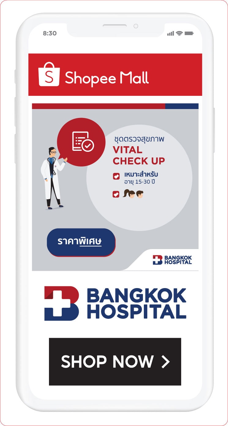 โรงพยาบาลกรุงเทพ ผู้นำตลาดเฮลท์แคร์ของไทย นำโดย แพทย์หญิงเมธินี ไหมแพง ผู้ช่วยประธานคณะผู้บริหาร กลุ่ม 1 และผู้อำนวยการ โรงพยาบาลกรุงเทพ ประกาศพันธมิตรอย่างเป็นทางการกับ ช้อปปี้ ผู้นำอีคอมเมิร์ซแพลตฟอร์มในภูมิภาคเอเชียตะวันออกเฉียงใต้และไต้หวัน นำโดย คุณสุชญา ปาลีวงศ์ ผู้จัดการฝ่ายการตลาด ช้อปปี้ (ประเทศไทย) เปิดตัวออฟฟิเชียลสโตร์ครั้งแรกในมหกรรม Shopee 11.11 Big Sale นับเป็นปรากฏการณ์ครั้งสำคัญในวงการอุตสาหกรรมเฮลท์แคร์ของเมืองไทย กับการขยายช่องทางการจำหน่ายในระบบออนไลน์ผ่านอีคอมเมิร์ซแพลตฟอร์ม รองรับพฤติกรรมผู้บริโภคในวิถีนิวนอร์มัล อัดโปรโมชั่นแพคเกจตรวจสุขภาพ พร้อมบริการทางสุขภาพเต็มรูปแบบในราคาประหยัด จับจ่ายง่าย เพราะอยากให้คุณมีสุขภาพที่ดี กดเลือกแพคเกจได้ง่าย เพียงแค่ปลายนิ้ว